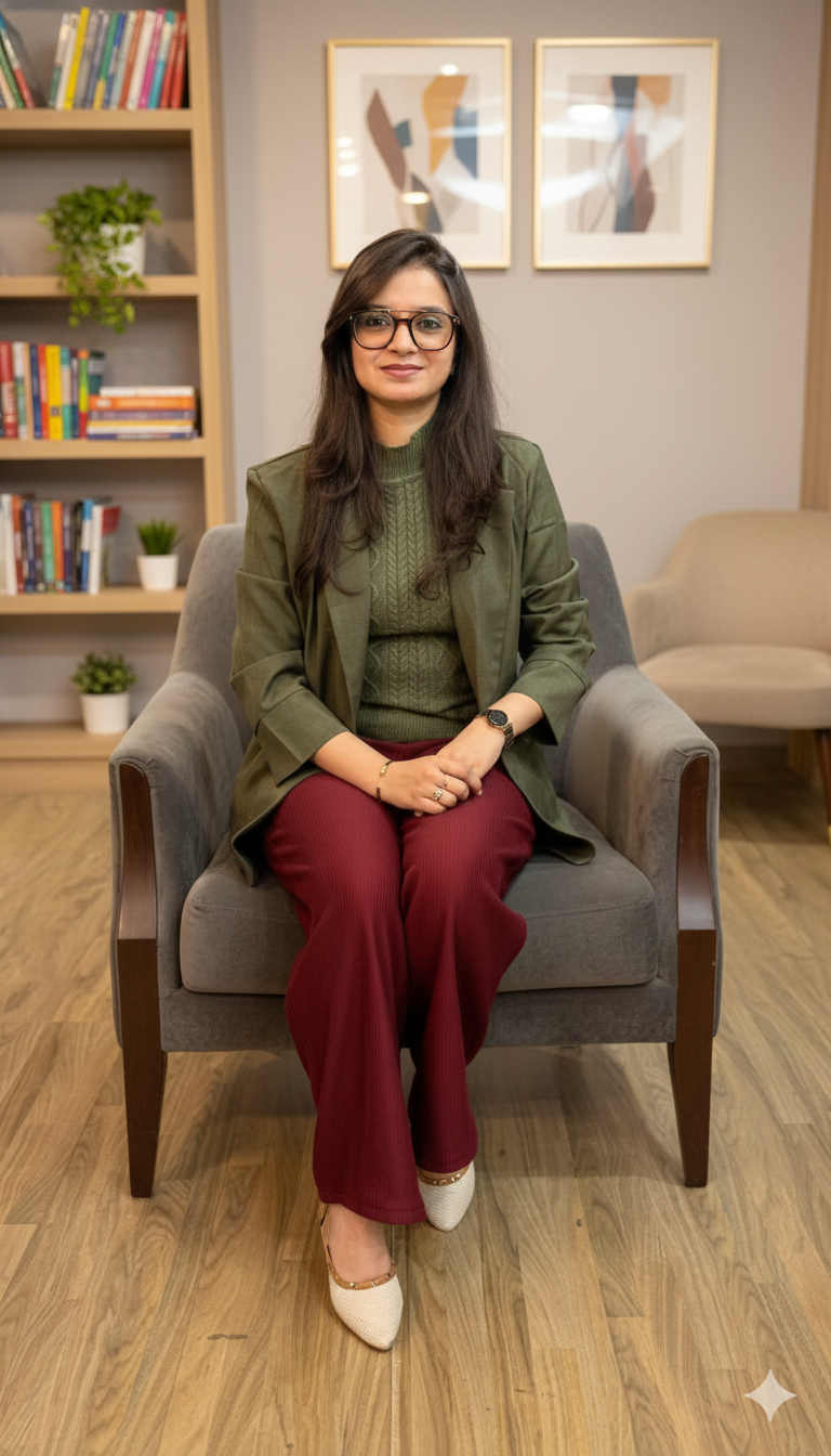 Her journey began at Rashtrapati Bhawan, where she worked with Dr. M. Wali, former Presidential Physician of India. She later trained under Ms. Gagandeep Kaur, a Presidential Gold Medalist in Clinical Psychology — gaining strong clinical foundations rarely seen in private practice.